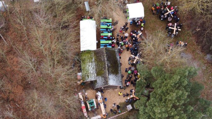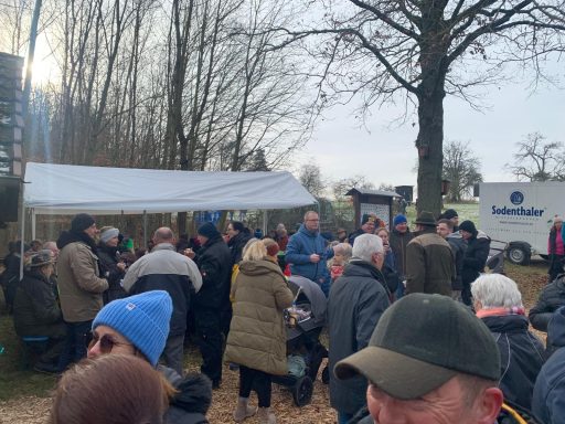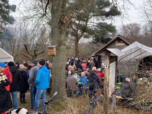 Aus Nah und Fern kamen wieder, wie schon seit über 50 Jahren, zahlreiche Besucher an die Blockhütte des Natur- und Vogelschutzvereins Großostheim im schönen Oberwald. Kalte Füße ? Kein Problem! Bei heißem Glühwein, Zimtler und Sliwowitz wurde jedem schnell wieder warm ! Und für den Hunger nach der Wanderung gabs wieder deftige Fleischwurst oder eine leckere Gulaschsuppe aus der historischen „Gulaschkanone“. Sogar die politische „Prominenz“ war dieses Jahr wieder da. Die letzten Besucher traten erst zu Beginn der Dämmerung den Heimweg an.