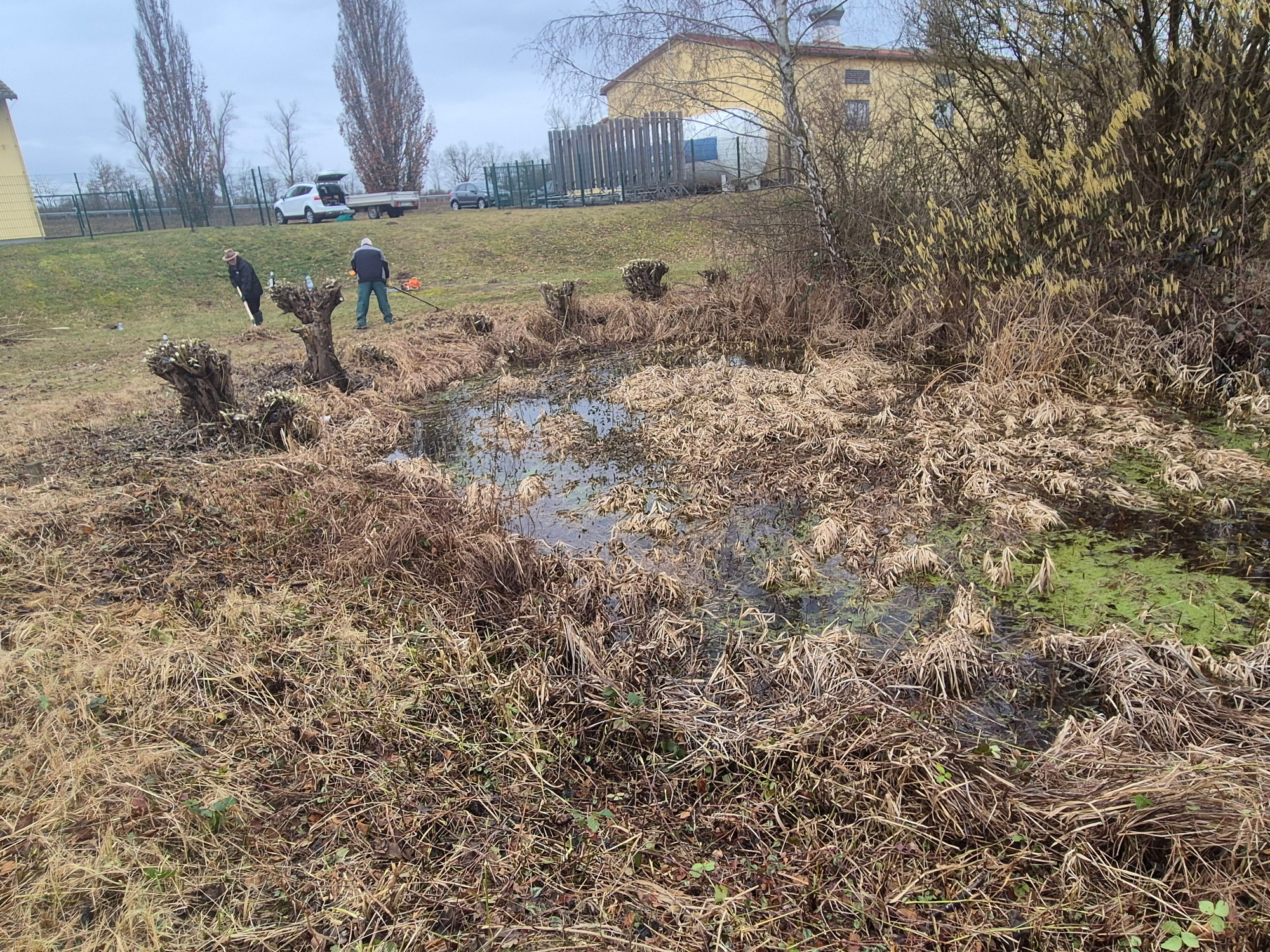 Rechtzeitig vor Frühlingsbeginn standen wieder die jährlichen Landschaftspflegearbeiten auf dem Terminplan. Hierfür wurden 2 Samstagvormittage als Arbeitsaktion angesetzt. Wieder haben sich zahlreiche freiwillige Helfer aus dem Verein bereit erklärt kräftig mit anzupacken. Am ersten Termin Mitte Februar war das Biotop am Wäldchesweg in Ringheim hinter dem Wasserwerk dran. Dieses Feuchtbiotop wurde Mitte der 80-er Jahre durch Mitglieder des Natur- und Vogelschutzvereins Großostheim neu angelegt und wird seitdem von diesen gepflegt. Dieses Jahr standen wieder Mäharbeiten, Ausputzarbeiten und Rückschnitte an den Kopfweiden rund um das Biotop an. Das alles geschah rechtzeitig vor den alljährlichen Krötenwanderungen zur Laichablage. Diese regelmäßigen Pflegemaßnahmen sind unbedingt erforderlich, um ein komplettes Zuwuchern des Weihers zu verhindern.