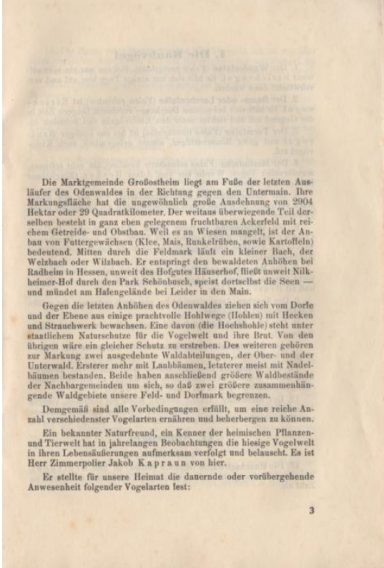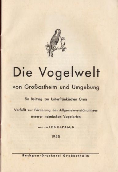 Jakob Kapraun Gründer des Natur- und Vogelschutzvereines Großostheim im Jahr 1913 mit 24 Mitgliedern