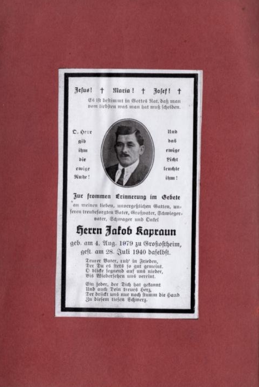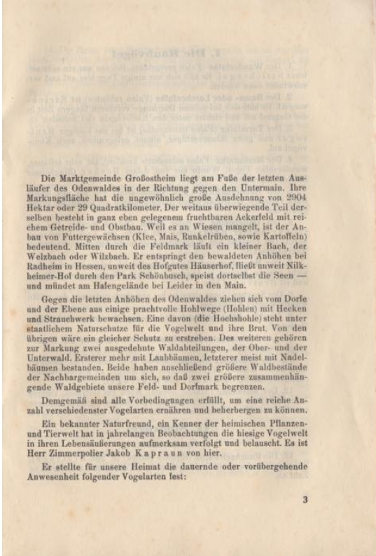 Jakob Kapraun Gründer des Natur- und Vogelschutzvereines Großostheim im Jahr 1913 mit 24 Mitgliedern